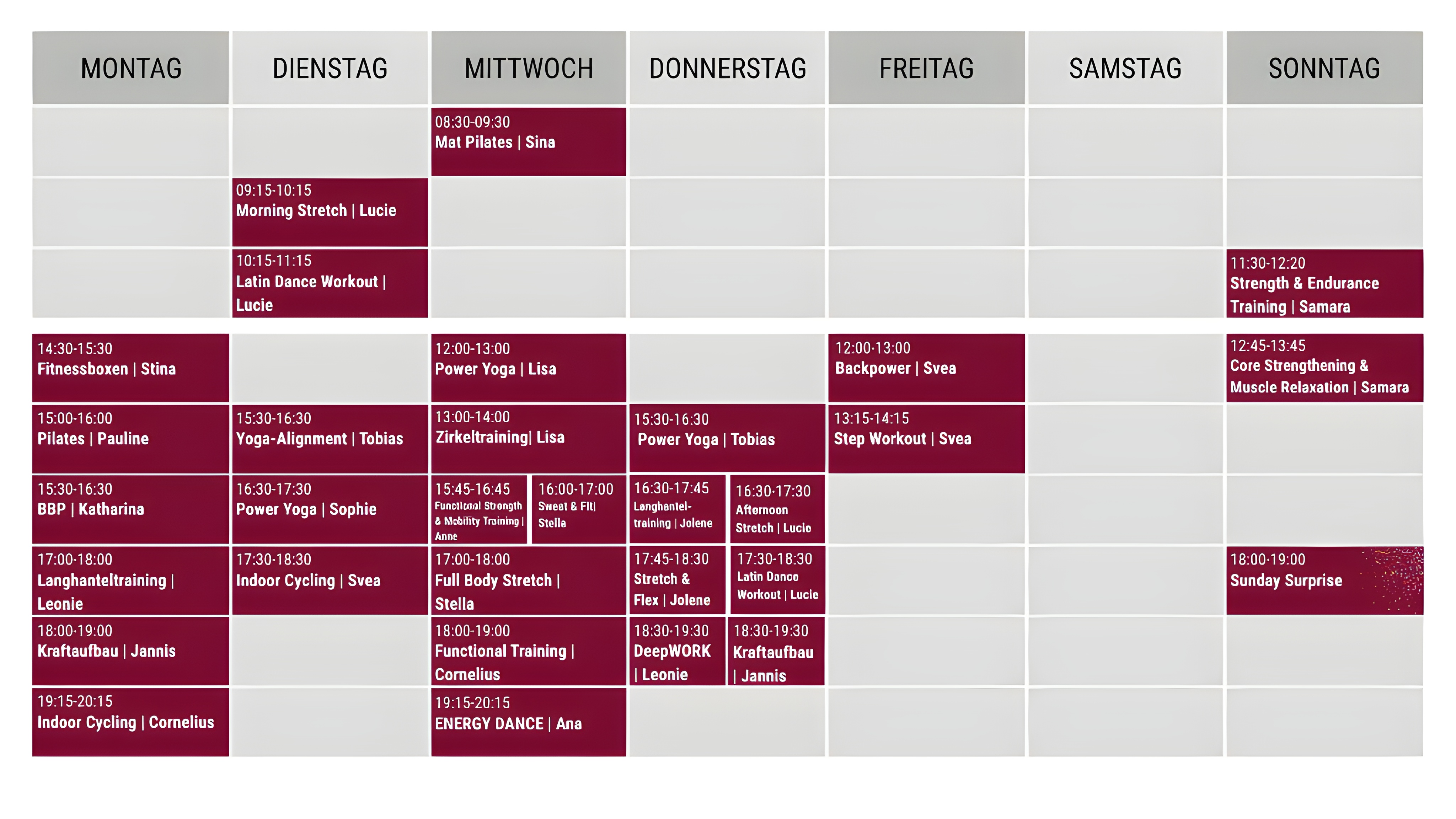 At Studio 21, a wide variety of sports activities await you every week in our two gym rooms, which are suitable for all fitness levels. With the Groupfit card, you can choose from 29 different courses and find out what you enjoy!