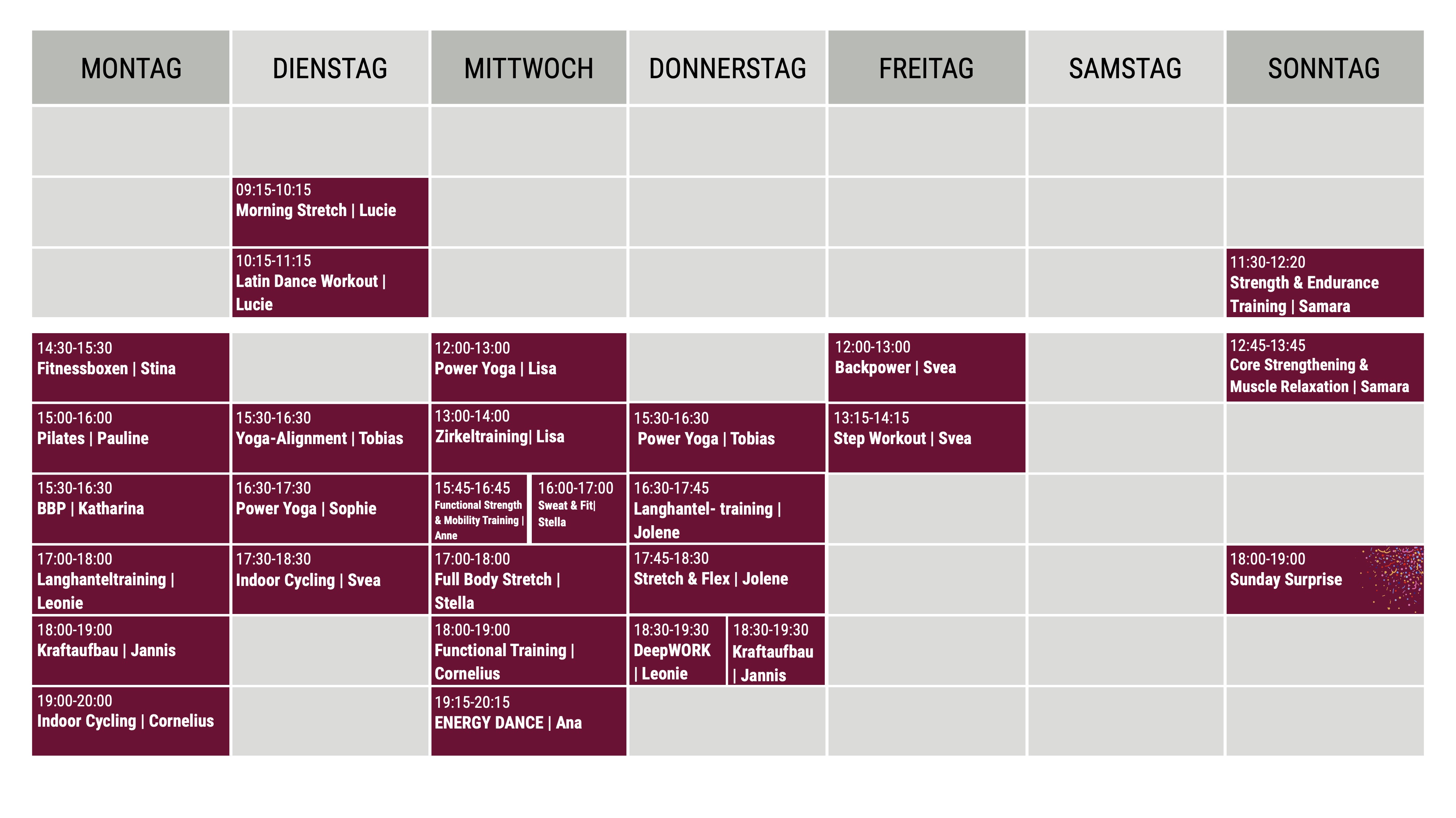 Please note: Mat Pilates by Sina is canceled for the entire period!
